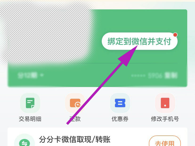 3、找到并点击“绑定到微信并支付”选项。
