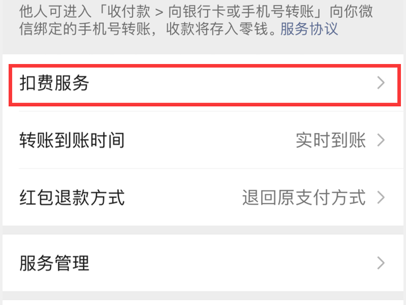 3、点击“扣费服务”按钮,进入扣费服务的界面中。