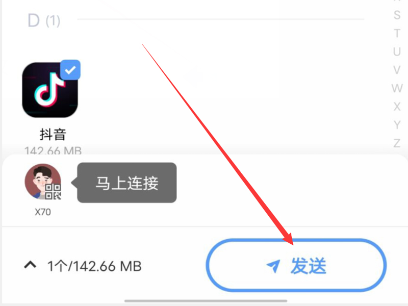 3、在“应用”内选择一个需要分享的软件,点击右下角的“发送”按钮即可。
