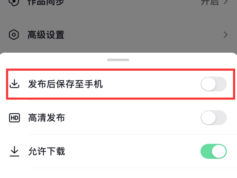 4、把“发布后保存至手机”的按钮关闭即可关闭同步相册。
