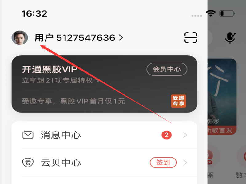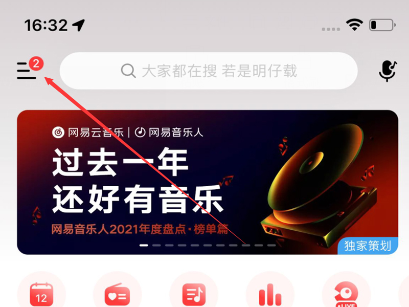 1、打开网易云音乐app,点击页面左上角的三横杠按钮,弹出菜单栏界面。