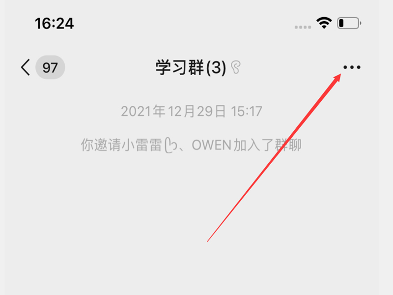 1、打开手机的微信app,进入群聊的聊天界面,点击右上角的三小点按钮。