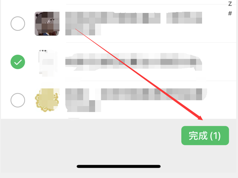 3、在好友列表中找到要拉入群聊的好友,勾选后点击右下角的“完成”即可拉他进入群聊。