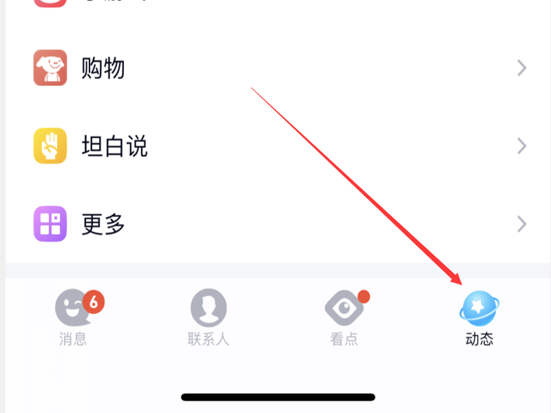 1、打开手机qq,进入页面右下角的“动态”栏。