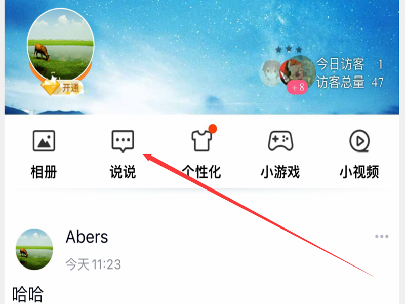 2、点击“好友动态”按钮,然后点击“说说”进入qq空间的说说页面。