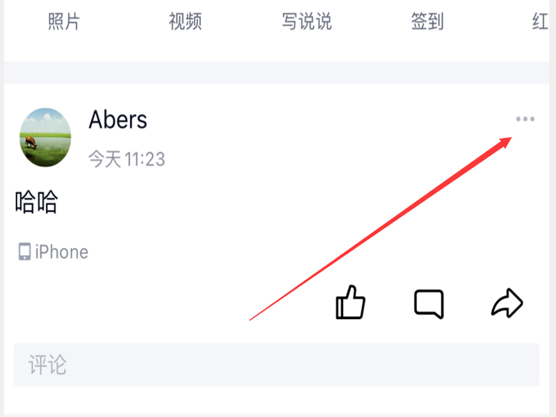 3、点击说说右边的三小点按钮,呼出工具栏。