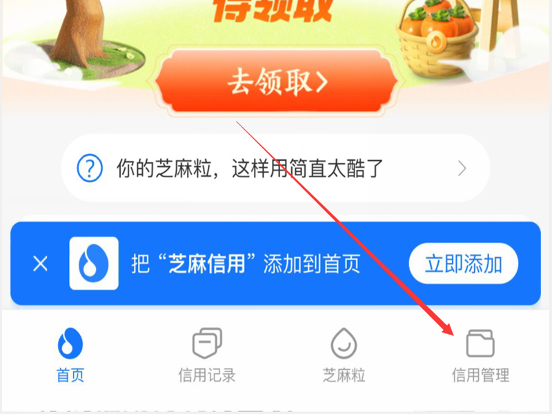 2、点击“芝麻信用”按钮,进入右下角的“信用管理”。