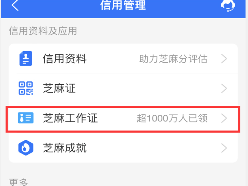 3、点击“芝麻工作证”按钮,进入芝麻工作证的页面。