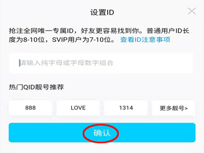设置QQID的具体操作步骤如下:1、打开QQ,点击左上角头像,再点击头像,进入个人资料页。2、点击QQ号后面的“ID”,进入ID身份卡页面。3、点击“立即设置”,进入设置ID页面。4、输入想设置的ID,并点击“确定”,即可以设置成功。