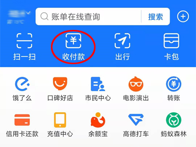 1、打开支付宝,点击上方的“收付款”,进入收付款页面。