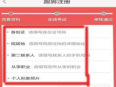 3、在跑男注册页面完善个人信息、上传证件,审核通过即可加入uu跑腿。