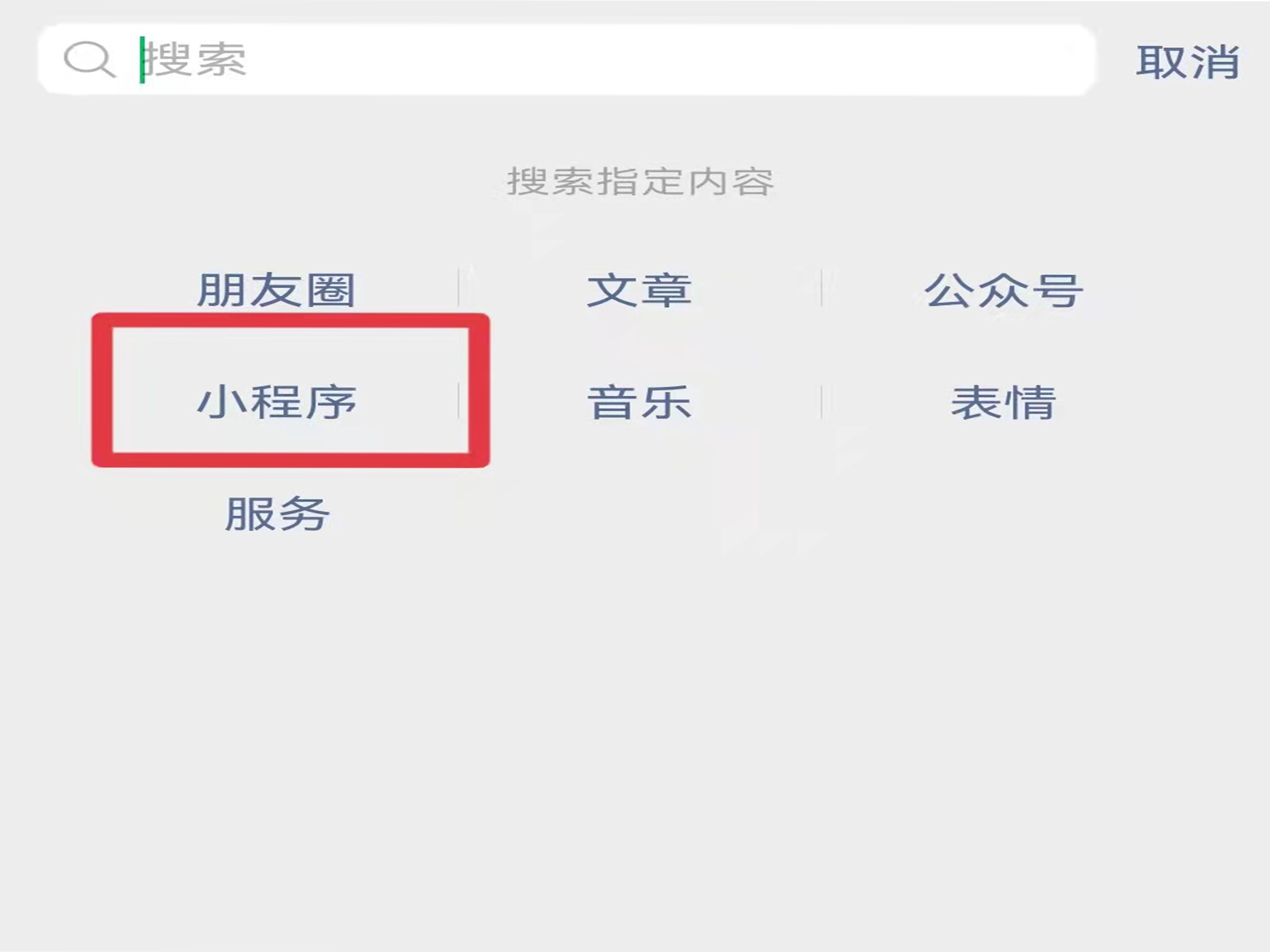 1、打开微信app,点击右上角的搜索图标,选择“小程序”。