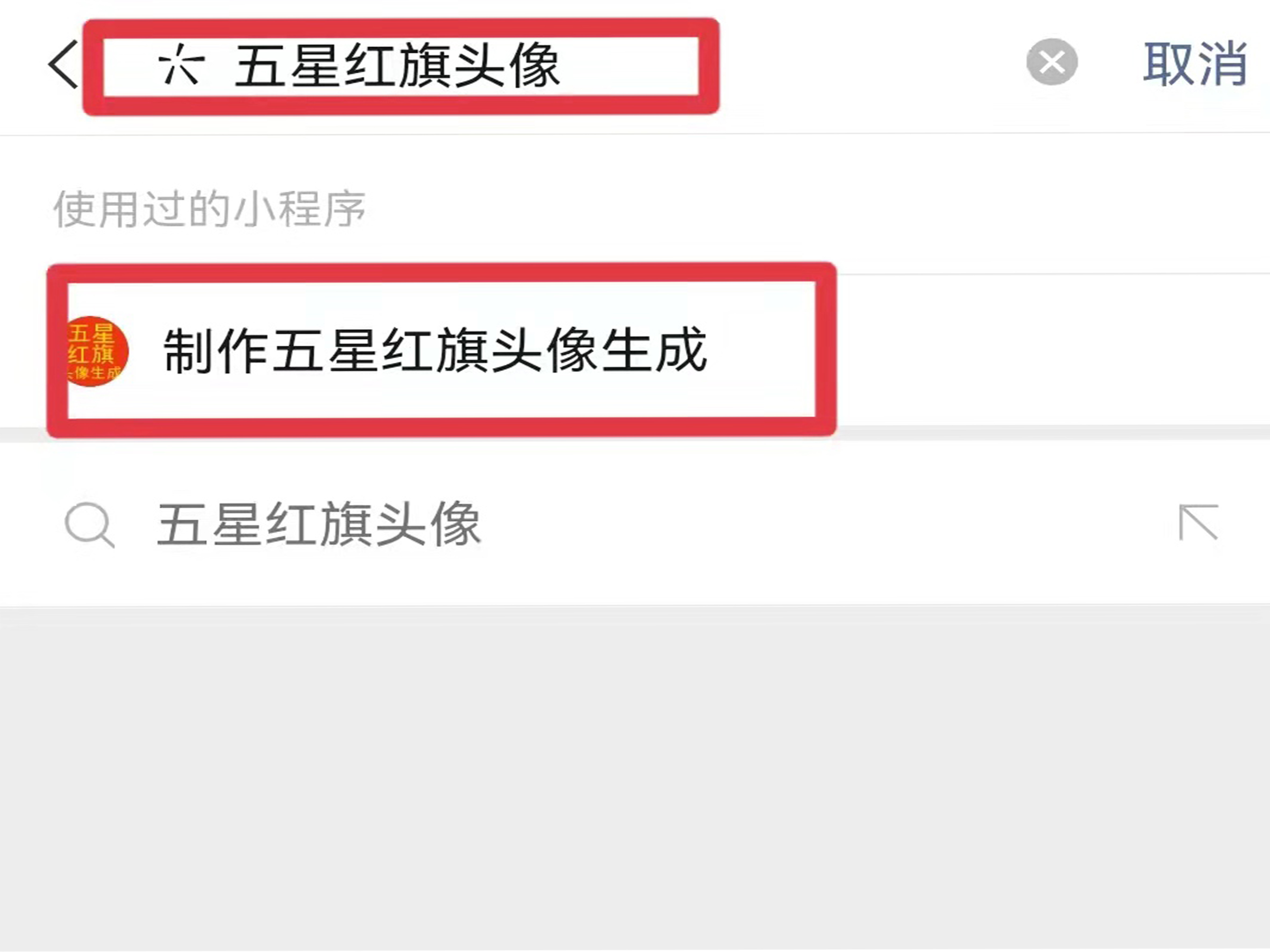 2、输入“五星红旗头像”,点击“制作五星红旗头像生成”小程序。