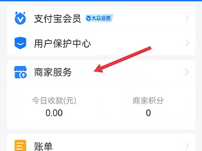 1、打开支付宝app,进入我的页面点击“商家服务”,进入页面。