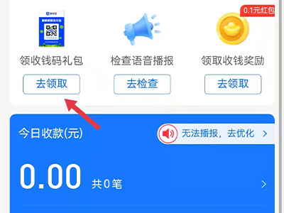2、在导航栏的领取收款码处点击“去领取”,进入服务。