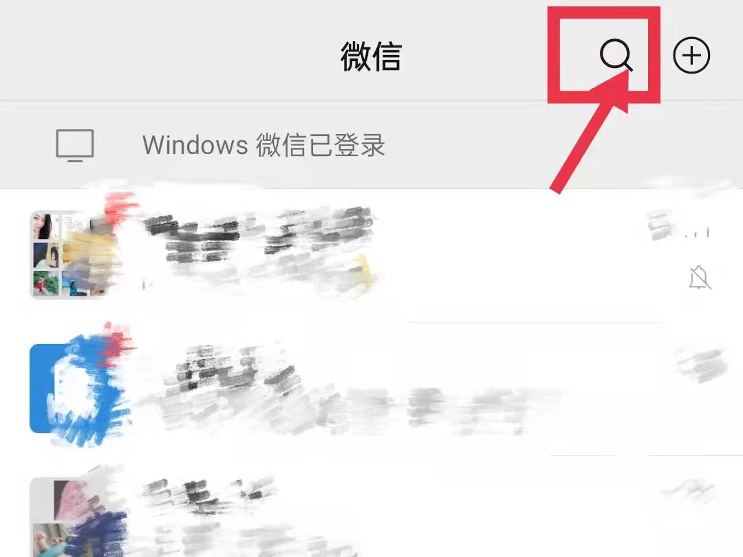1、打开微信,找到右上角的搜索图标,点击进入。