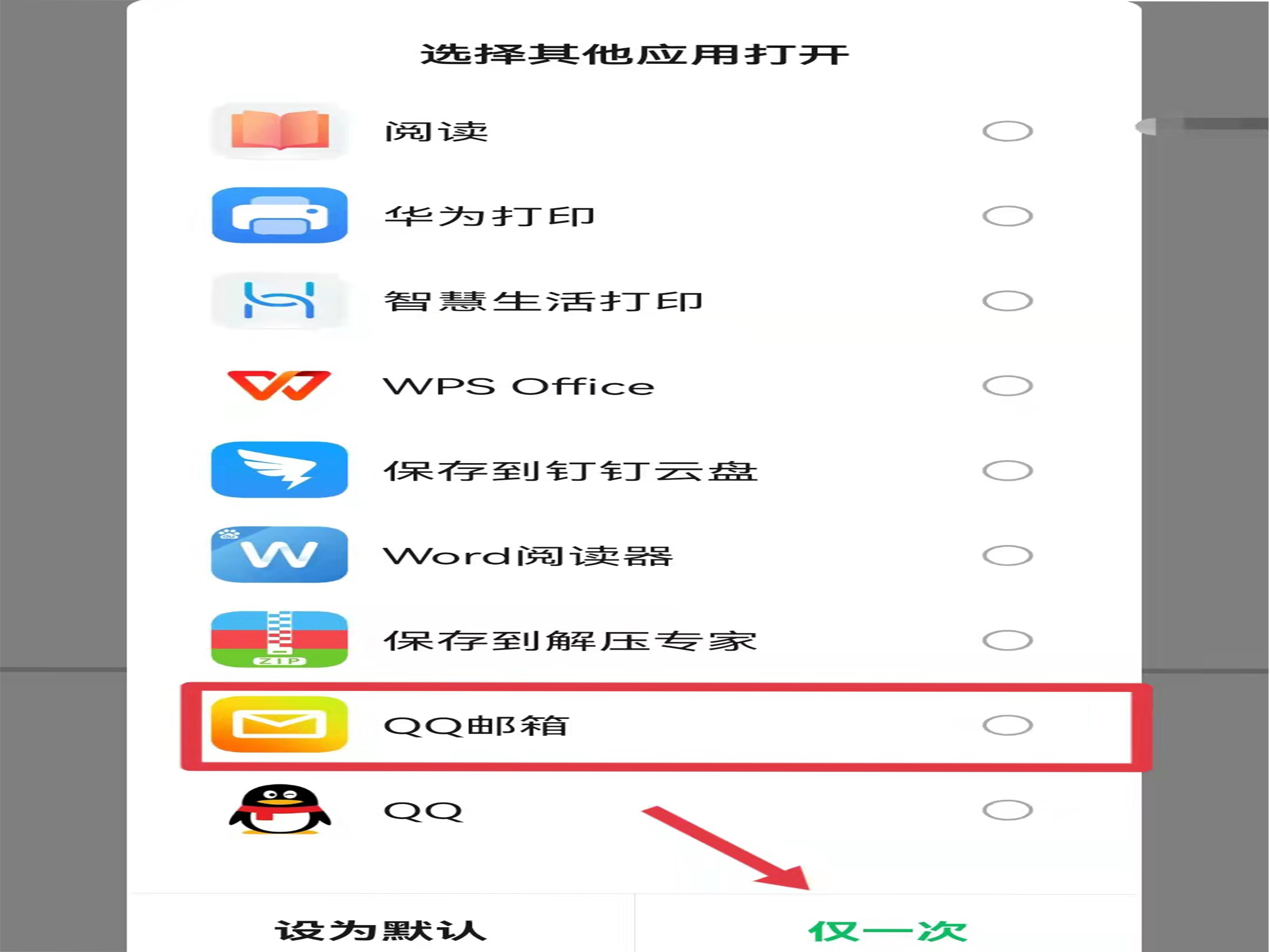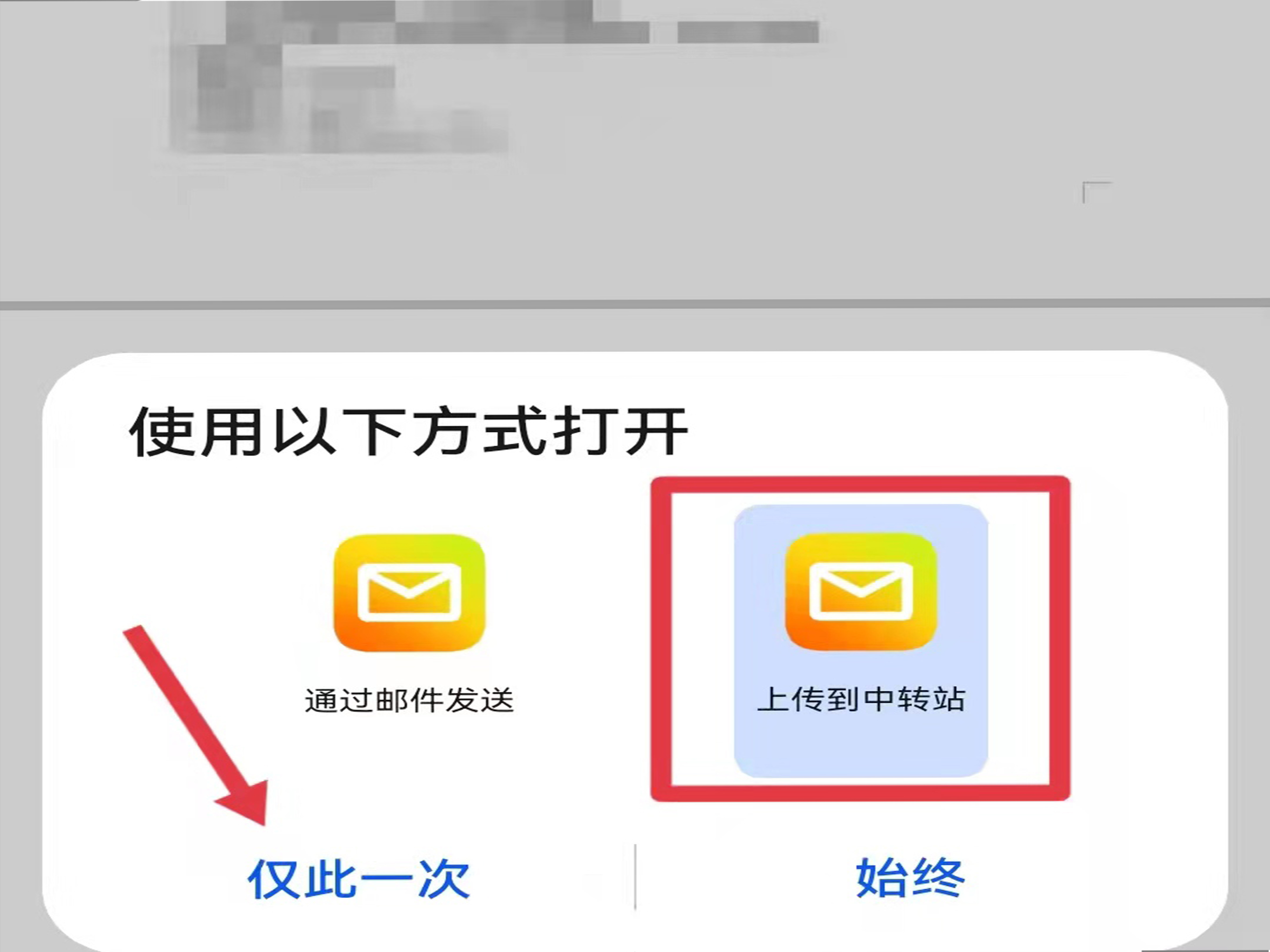 2、选择QQ邮箱,点击“仅此一次”,点击“上传到中转站”。