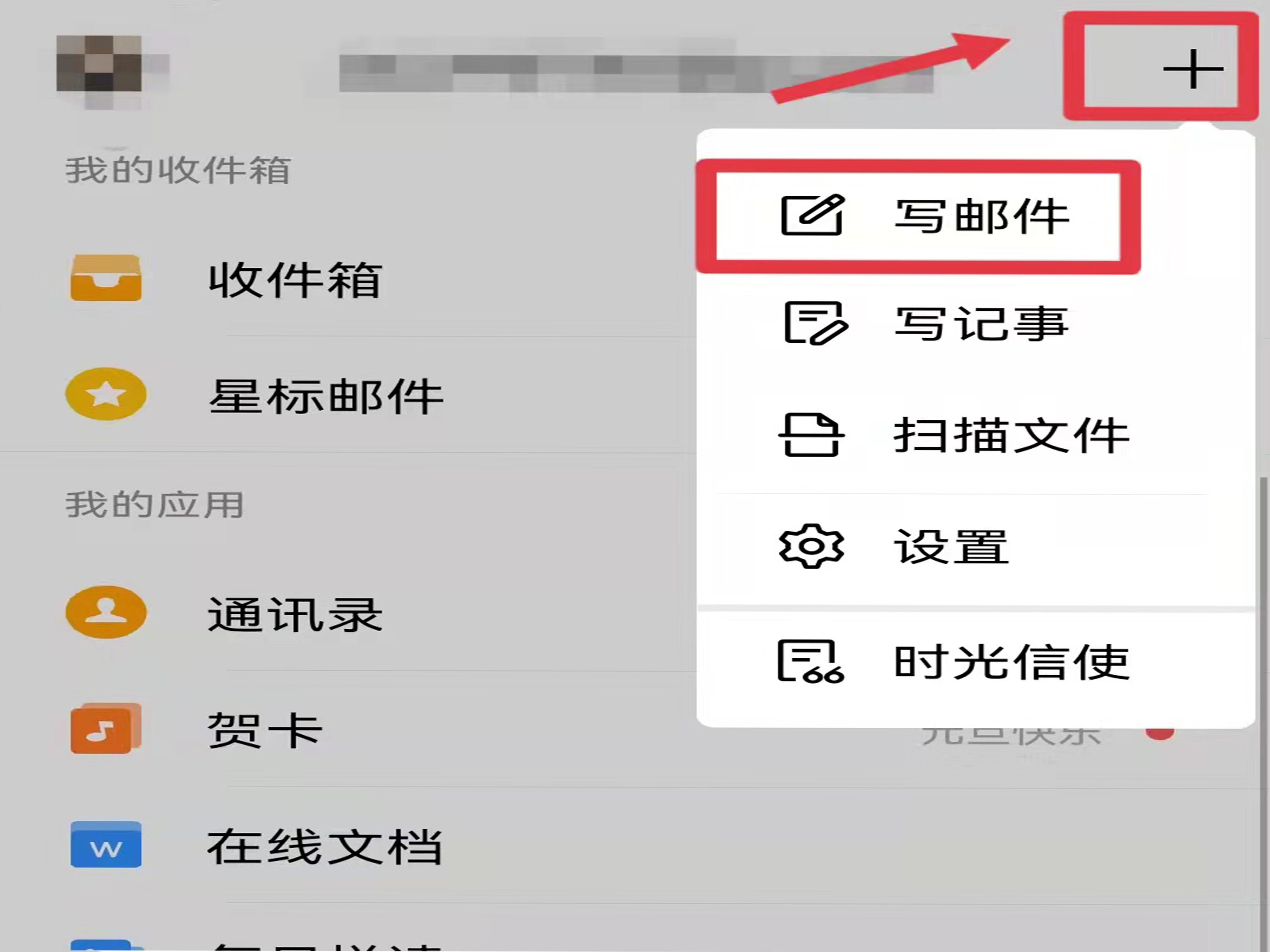 3、打开QQ邮箱,点击右上角的“+”图标,点击“写邮件”。