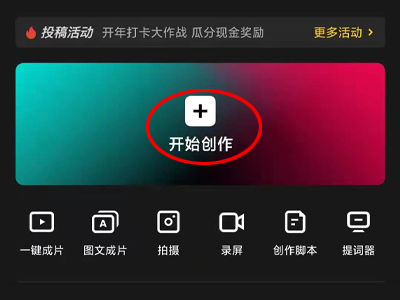 1、打开剪映,点击“开始创作”,添加图片/视频。