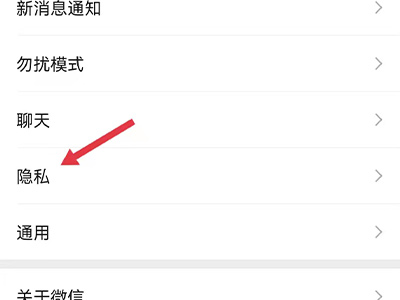1、打开微信app,进入设置页面后,点击隐私,进入页面。