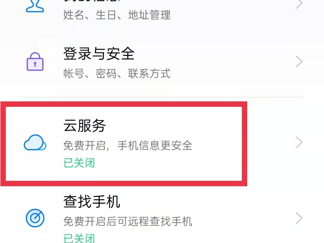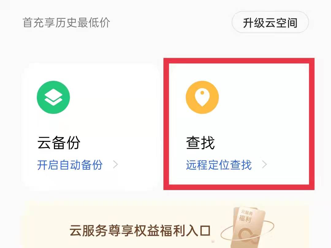 3、在云服务页面中点击“查找手机 ”,进入查找手机页面。