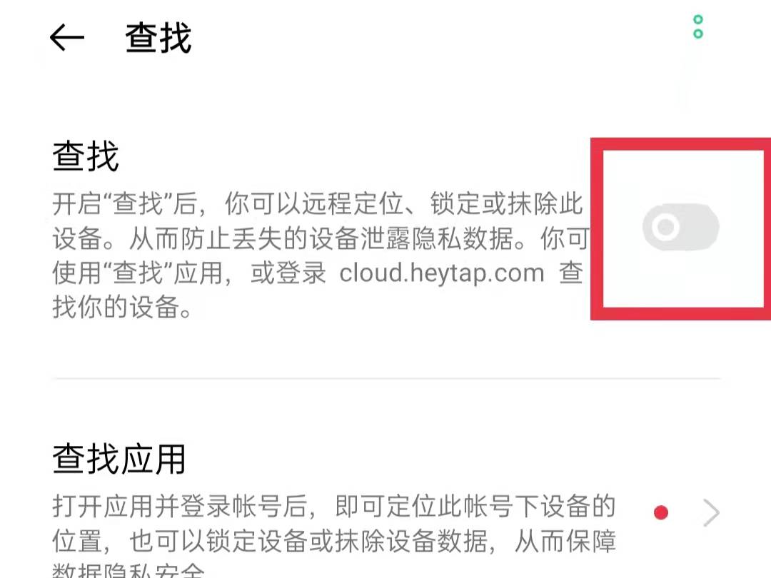 4、 在查找手机页面中打开查找手机后面的开关,根据系统提示验证账号,完成后即可定位。