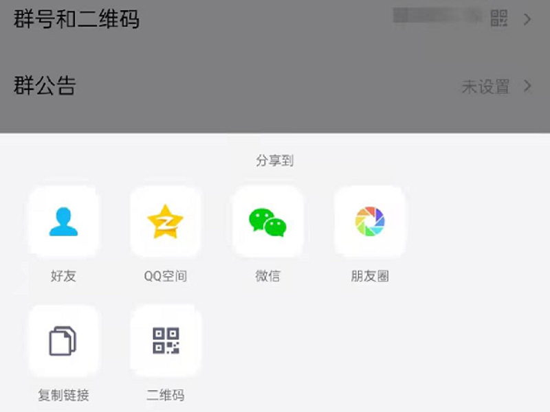 3、点击右上角分享标志,选择分享方式即可将QQ群推广。