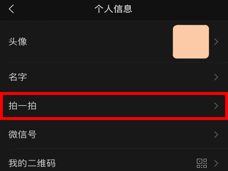 2、进入“个人信息”界面后,点击“拍一拍”。