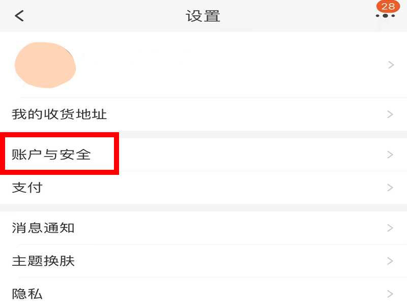 2、进入“设置”界面后,点击“账户与安全”。