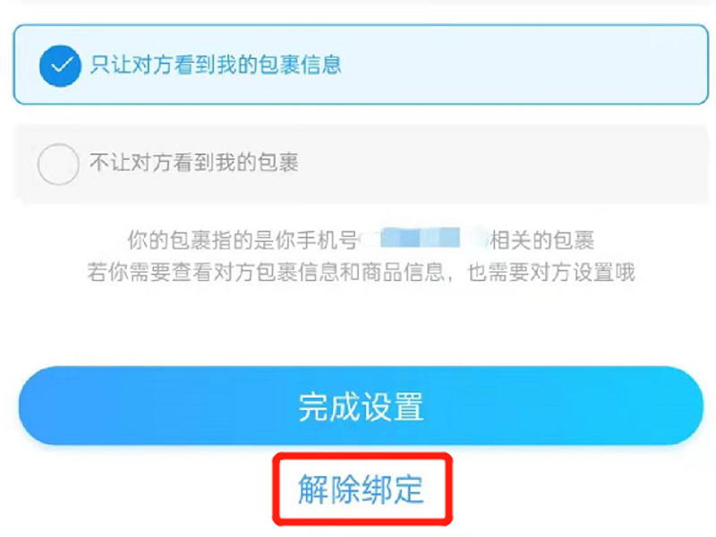 解除别人绑定我的快递的具体操作如下:1、打开手机淘宝app,点击“我的淘宝”进入个人页面。2、点击“我的快递”进入菜鸟快递页面。3、点击“我的”,再点击“手机号管理”,进入手机号管理页面。4、在手机号管理页面点击绑定的手机号,再点击“解除绑定”,弹出确认窗口。5、点击确定即可。