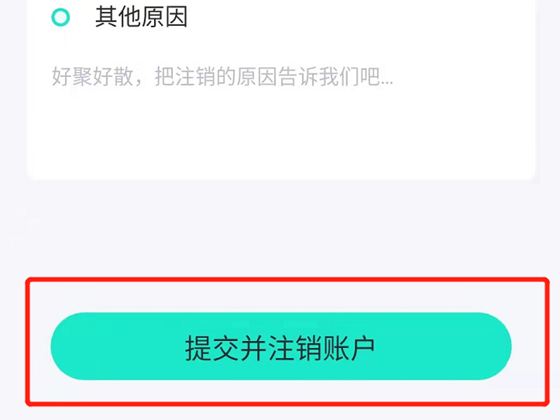 4、点击仍然注销后,进入申请注销界面,然后填写原因,再点击提交并注销账户即可。