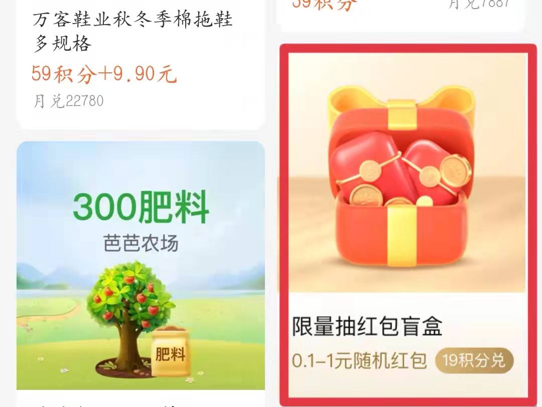 2、下滑界面,找到“限量抽红包盲盒”,点击进入。