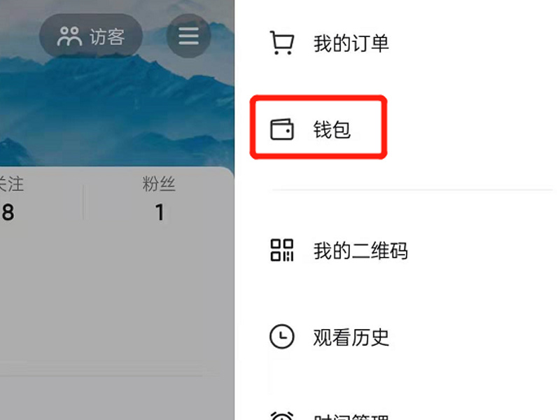 2、点击右上角菜单标志,再点击“钱包”。