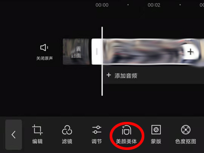 3、向右滑动剪辑工具,点击“美颜美体”。