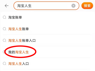 2、在搜索框内输入“淘宝人生”,进入我的淘宝人生。