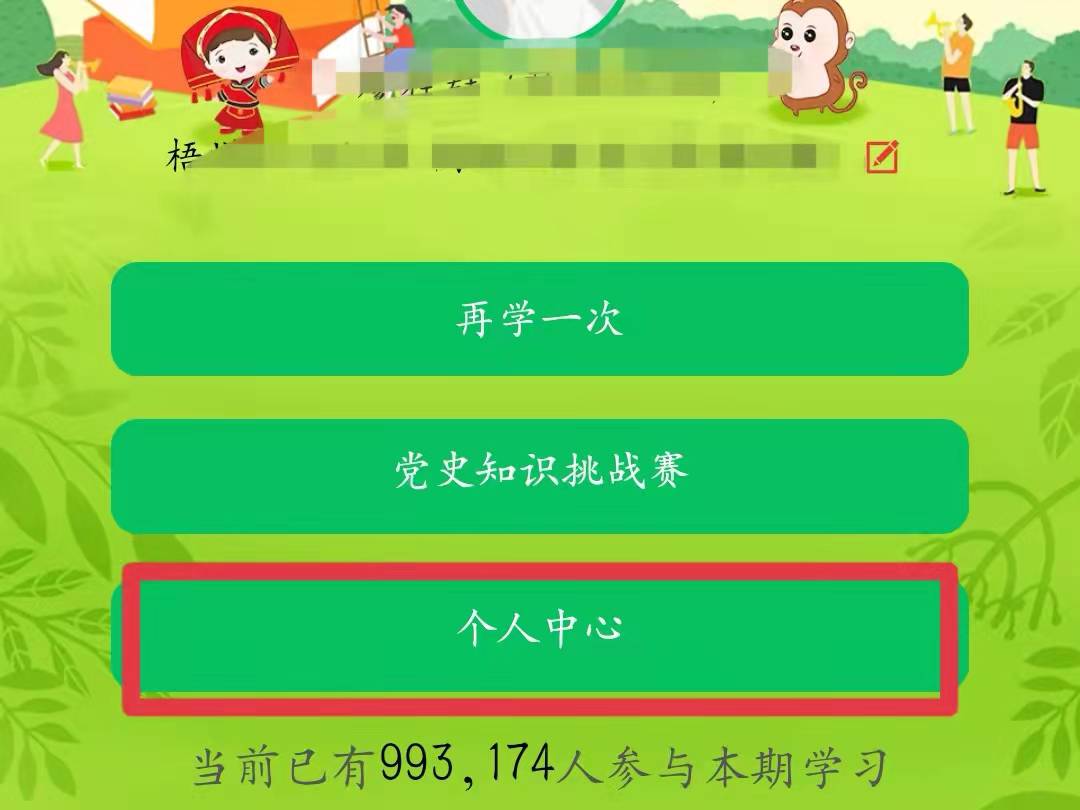 1、打开微信,搜索“广西青年大学习”公众号,登录个人账号,点击“个人中心”。