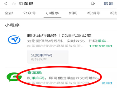 3、切换到小程序模块,选择乘车码小程序。