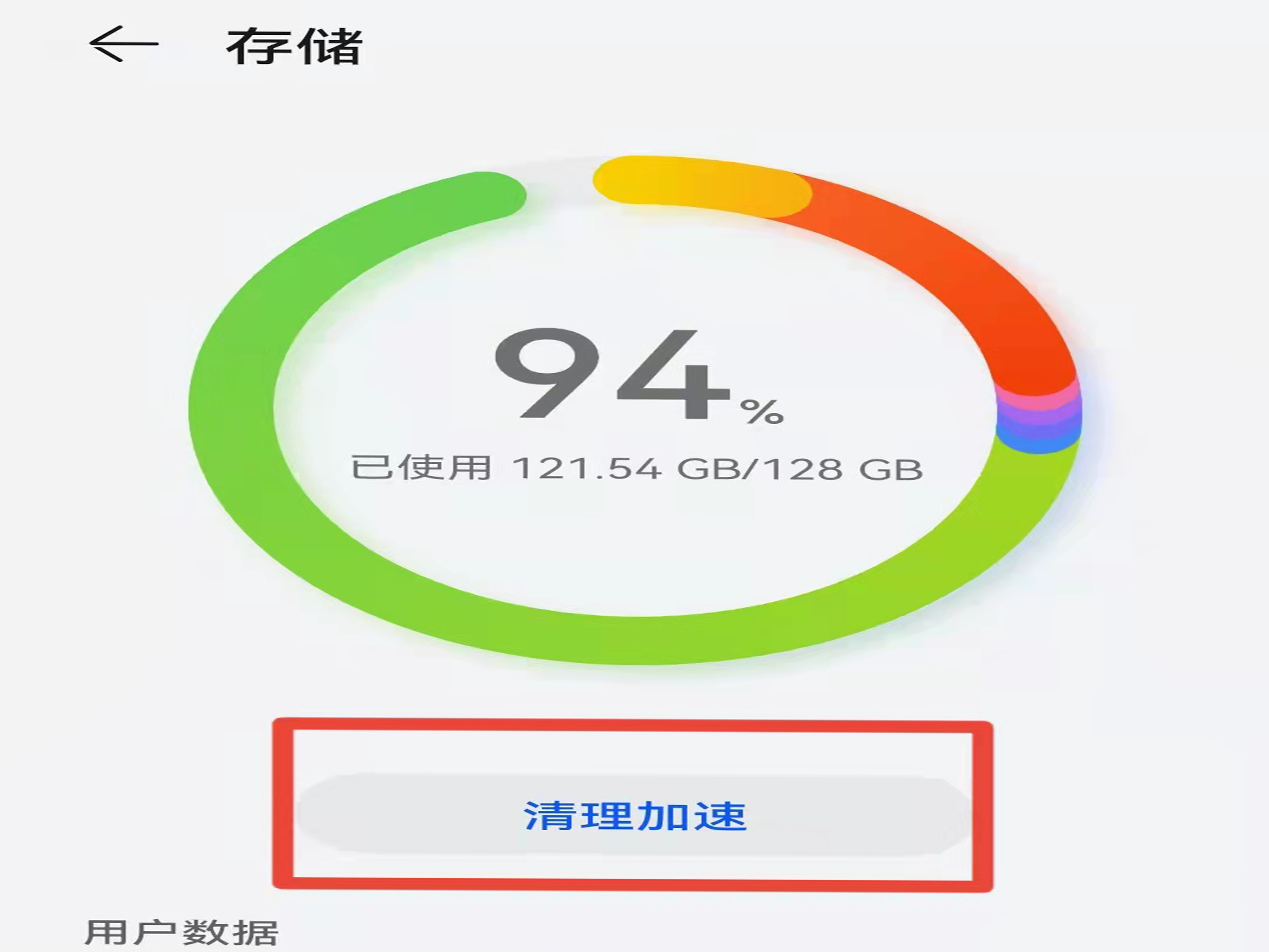 2、点击“存储”,点击“清理加速”。