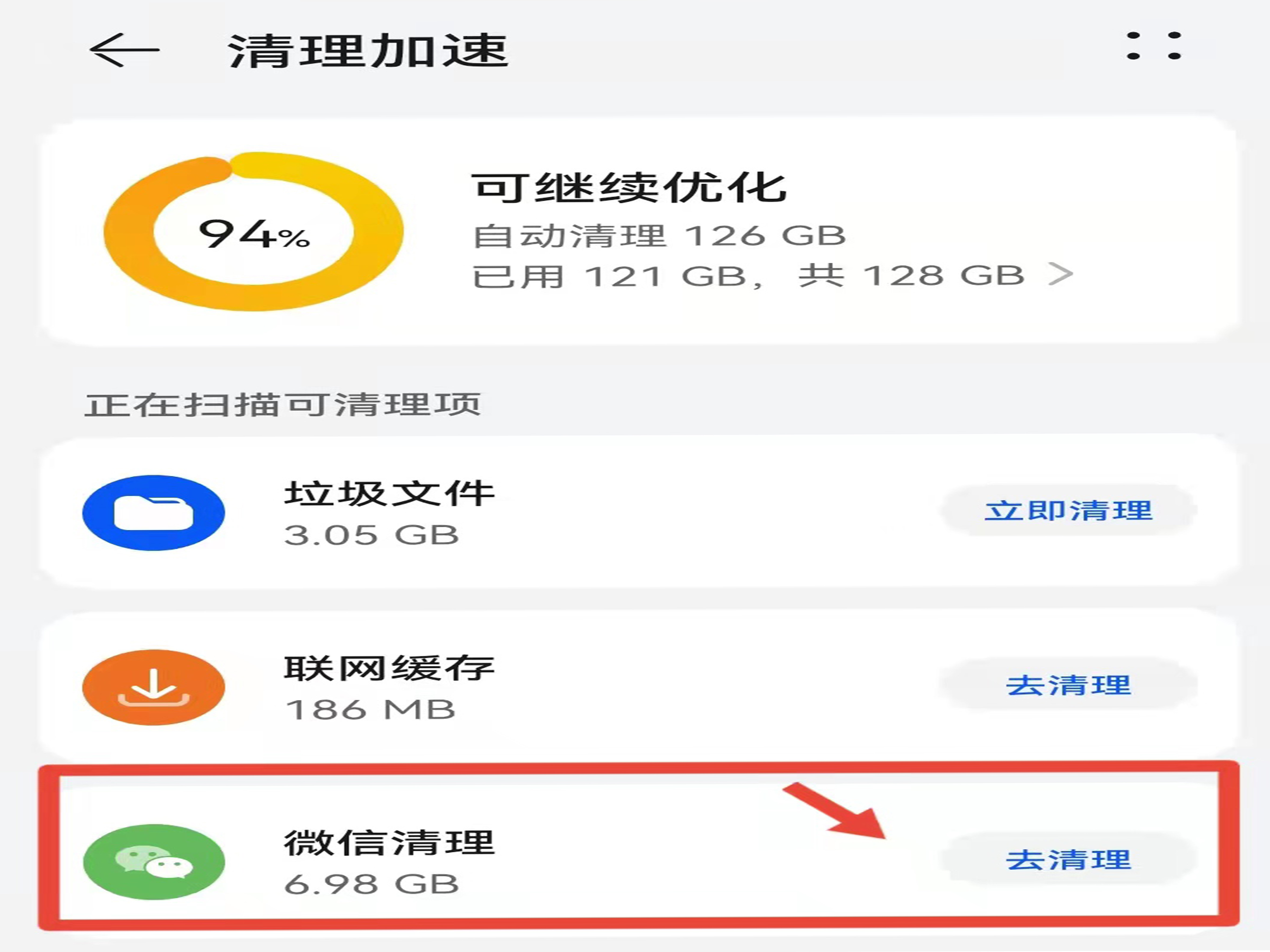 3、点击“微信清理”右侧的“去清理”按钮。