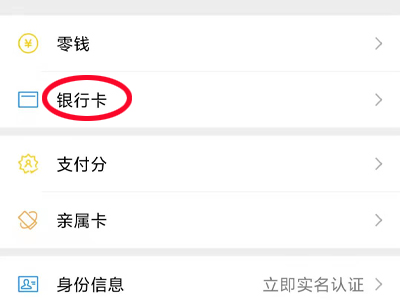 4、点击“银行卡”,进入银行卡页面。