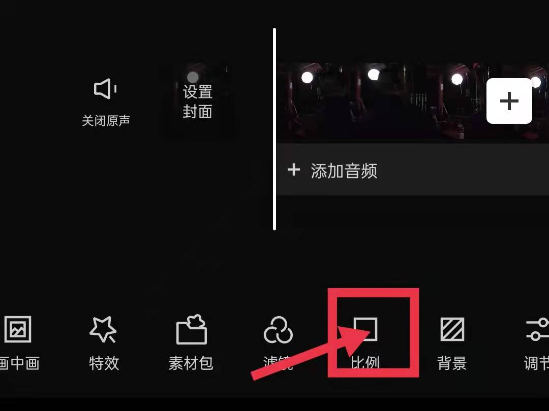 3、添加项目后,点击下方的“比例”,就可以设置视频的分辨率。