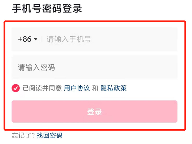 3、也可以选择使用密码登录,输入手机号和登录密码再点击登录即可。