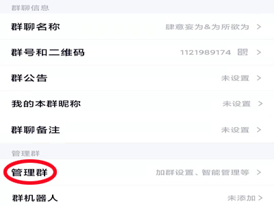 4、下滑页面,点击“管理群”,进入管理群页面。