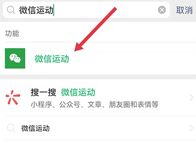 1、打开手机微信app,搜索并进入微信运动功能。