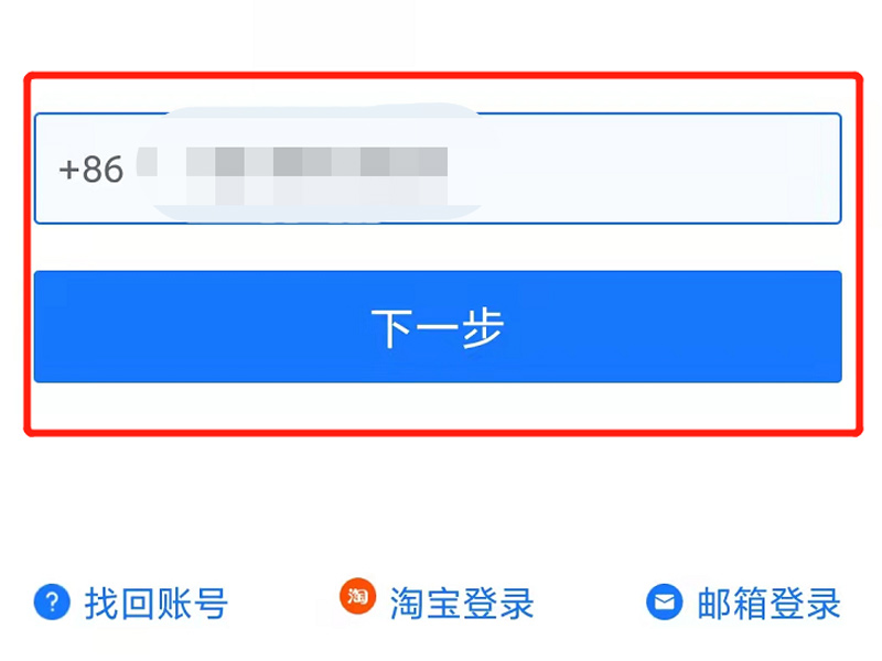 1、打开支付宝app,输入手机号码,然后点击下一步。