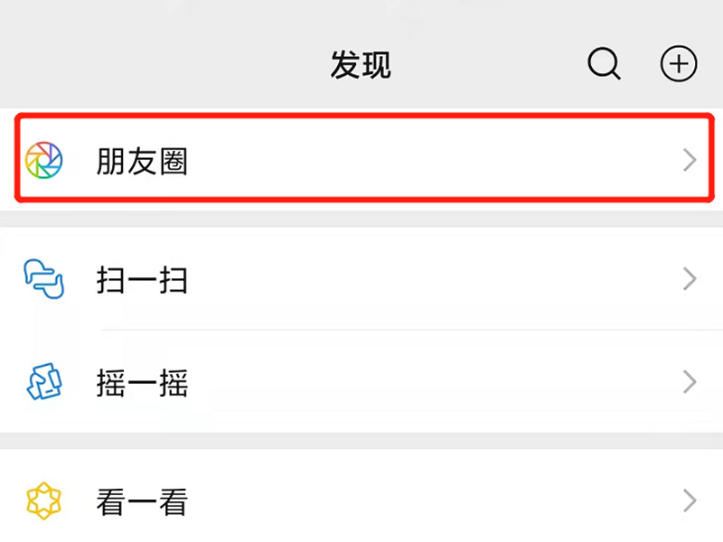 1、打开微信app,点击下方的发现,再点击上方的朋友圈。