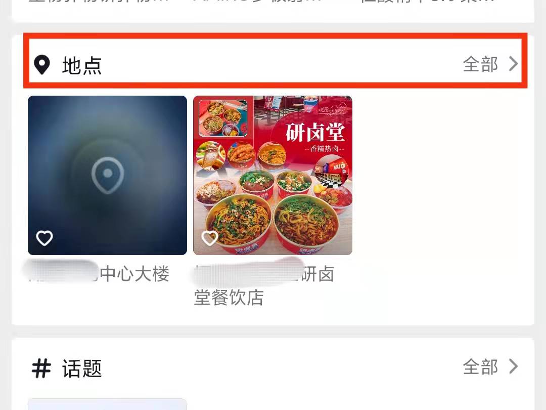 3、点击“全部”,选择地点即可查看收藏的具体的美食位置。