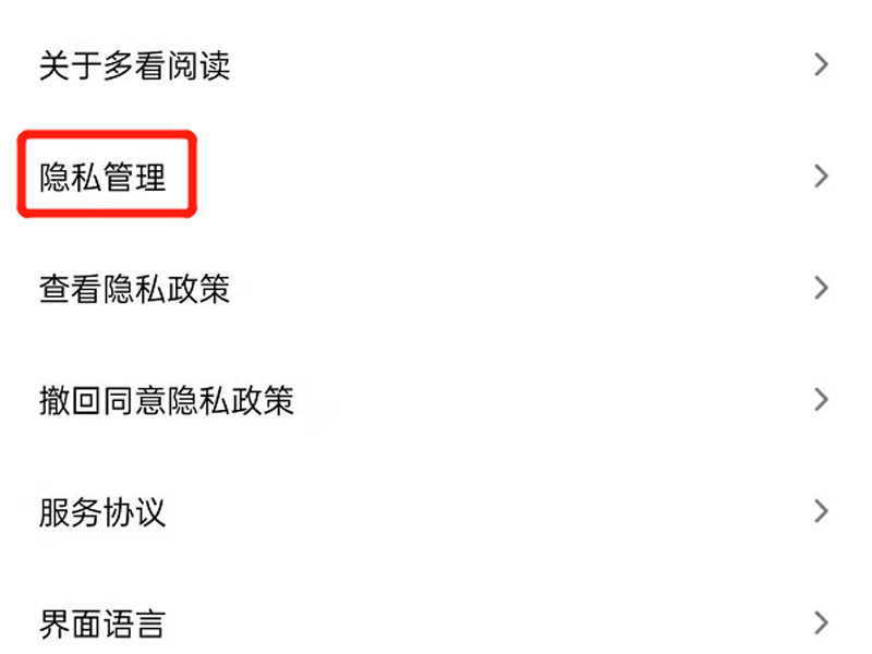3、点击“隐私管理”。