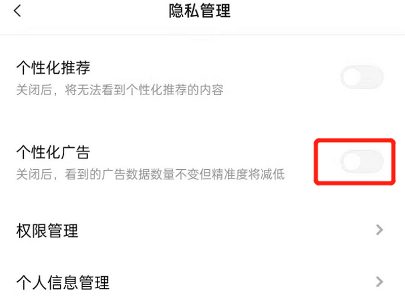 4、把“个性化广告”进行关闭即可。