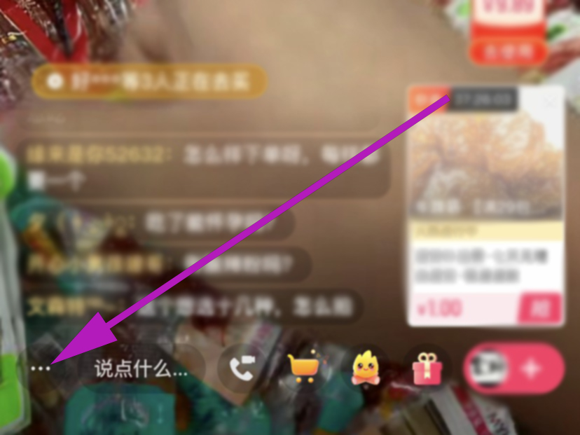 1、在带货直播间进行举报,点击左下角的三个小点打开选择页面。